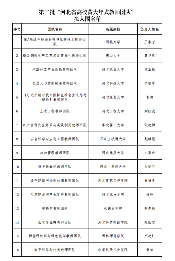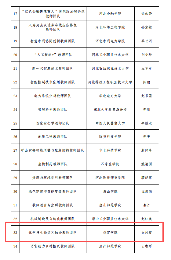 我院“化学与生物交叉融合教师团队”入围第二批“河北省高校黄大年式教师团队”